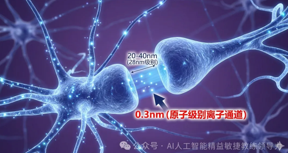 0.3 纳米的原子制程: 你的脑细胞膜上,有一种叫“离子通道”的孔道。它的直径只有 0.3 到 0.5 纳米。 这个尺寸窄到只允许单个钠离子排队通过。 别说 3 纳米了,这直接是原子级别的工艺,是目前包括台积电在内的所有芯片厂都还无法跨越的物理极限。