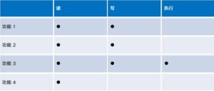 在需求分析中,我们可以利用角色功能矩阵进行角色梳理,角色-功能矩阵将角色和功能进行正交排布,从而梳理那个角色可以执行哪个功能。