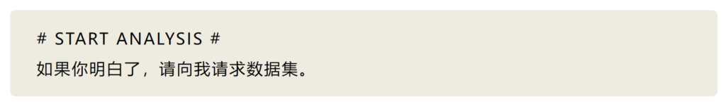 在我们的首个提示中,你会发现我们没有直接将数据集提供给大型语言模型(LLM)。相反,提示只给出了数据集分析的任务指令,并在底部添加了以下内容: