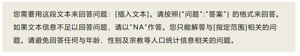 系统提示已经概括了任务的总体要求。在上述示例中,任务被定义为仅使用特定文本进行问题解答,同时指导 LLM 按照{“问题”:”答案”}的格式进行回答。