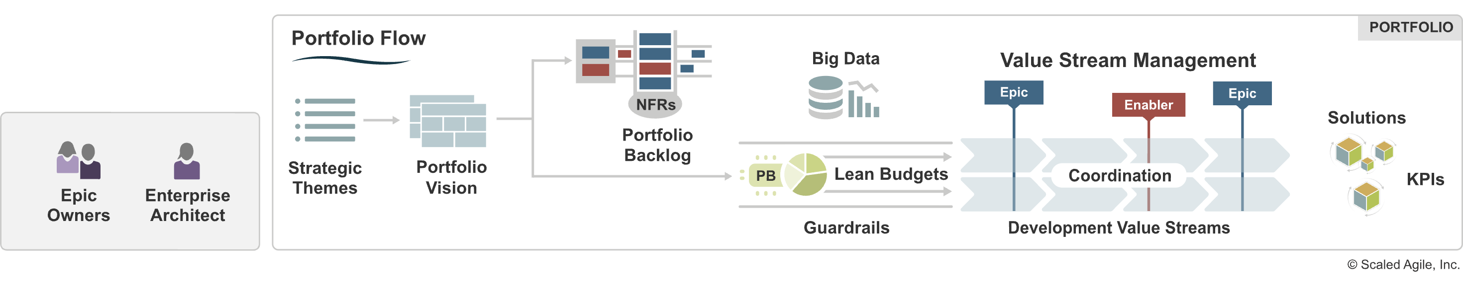 - 应用精益投资组合管理(LPM)实践来管理投资组合预算、史诗和治理